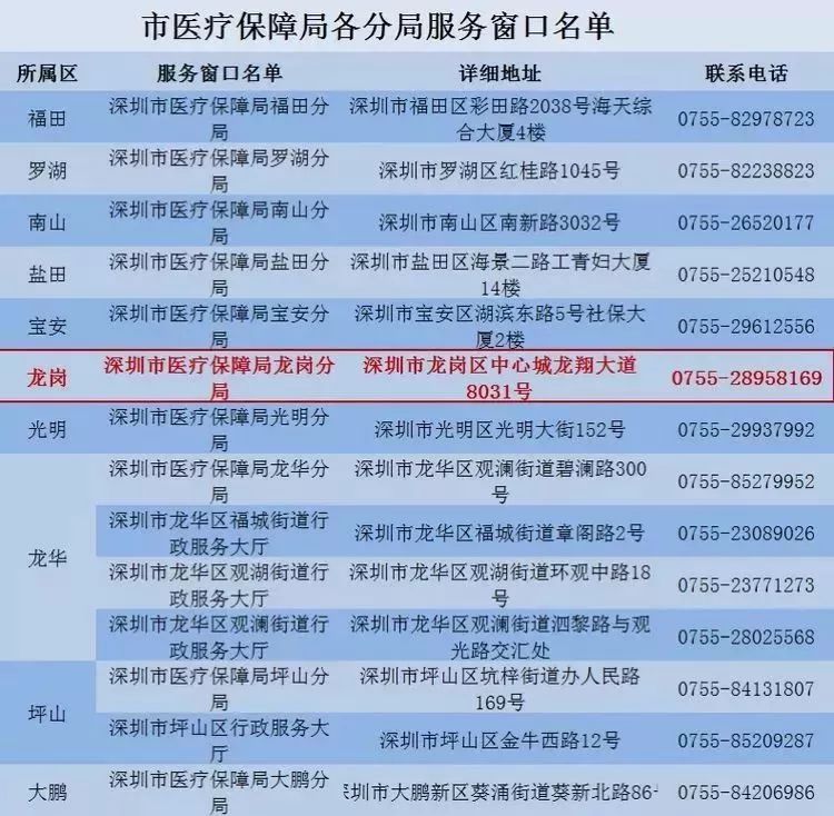 近日,深圳龙岗区吉华、园山、宝龙三个街道也进驻医保业务,加上之前的八个街道。深圳龙岗区目前有11个街道行政服务大厅可办理医保业务