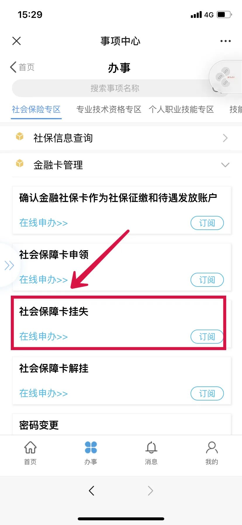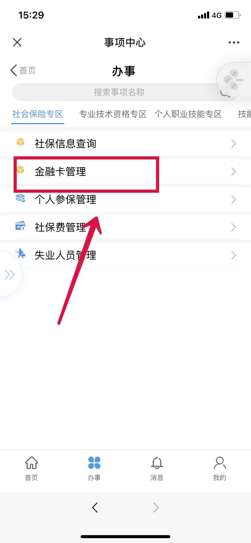 第二步:点击下方“办事”版块,进入办事页面