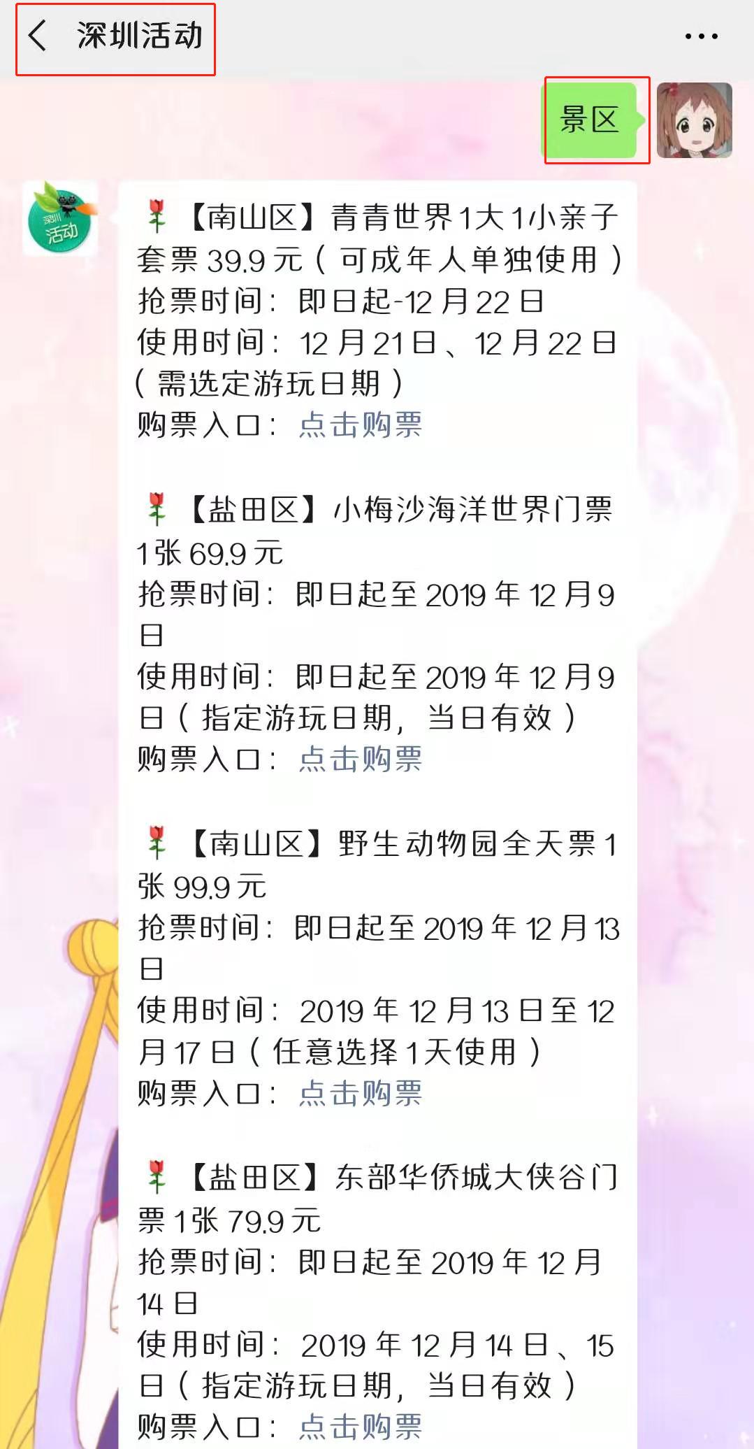 微信搜索关注【深圳生活情报局】公众号,后台回复关键词【景区】即可获取深圳12月景区优惠门票购票入口。