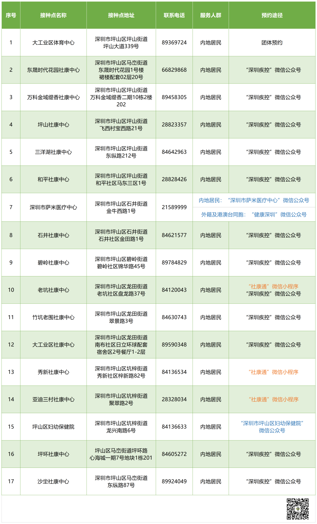 坪山区新冠疫苗接种已实施全面预约制。未预约成功,切勿前往。