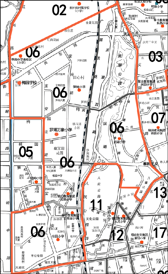06大学区由笋岗小学、罗湖实验学校(原笋岗中学)小学部、桂园小学、红桂小学、百草园小学、罗湖万象小学、罗湖梅园学校、洪湖小学等8所学校组成。