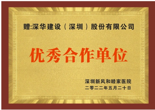 2022年5月24日,深华建设喜获深圳新风和睦家医院颁发的“优秀合作单位”荣誉牌匾,彰显了深华建设打造精品工程的技术实力以及优质的项目服务能力。获该项目荣誉的背后是深华建设项目部管理能力和对工程品质追求的具体体现。